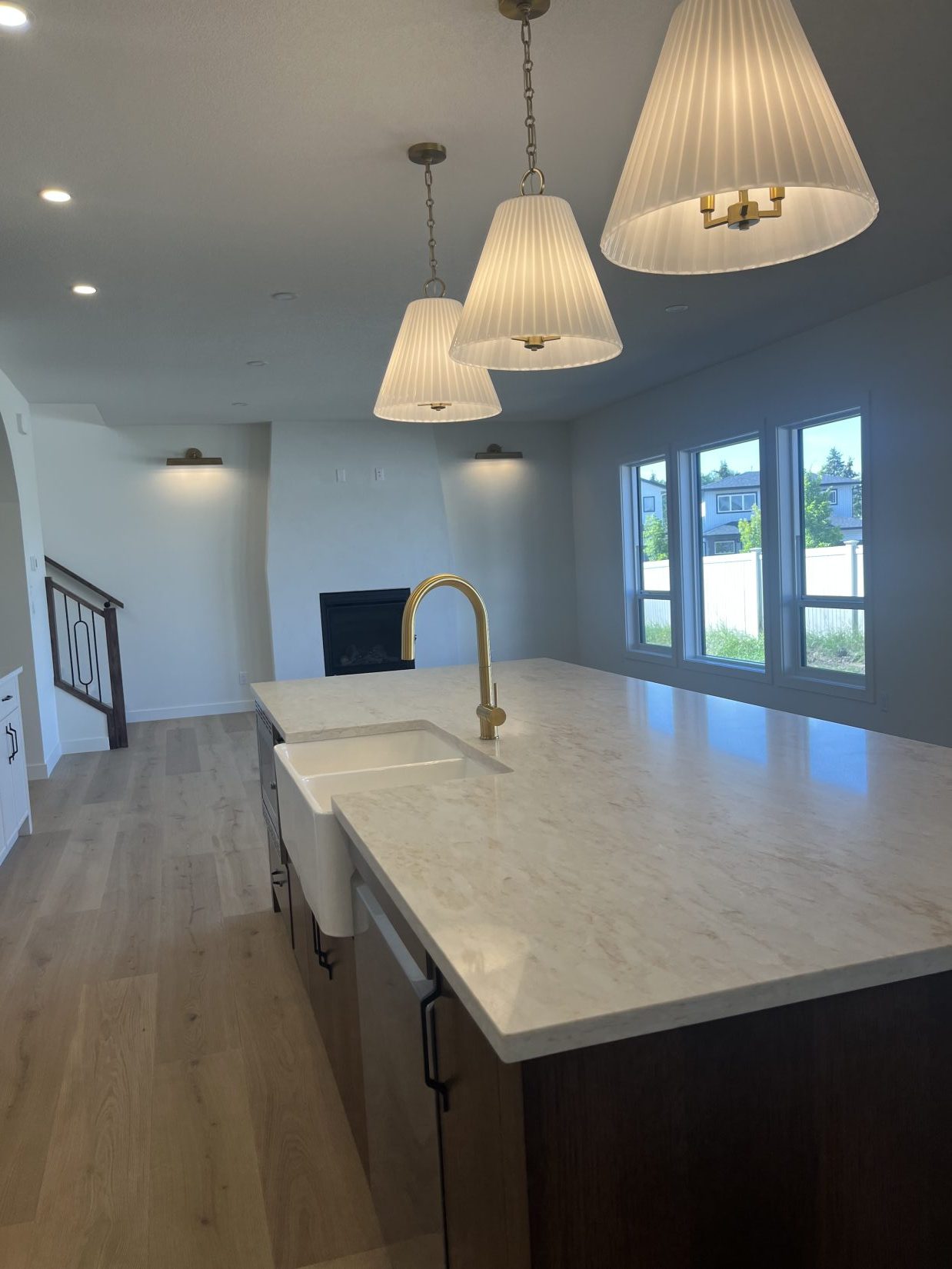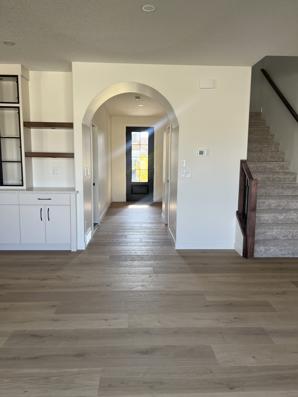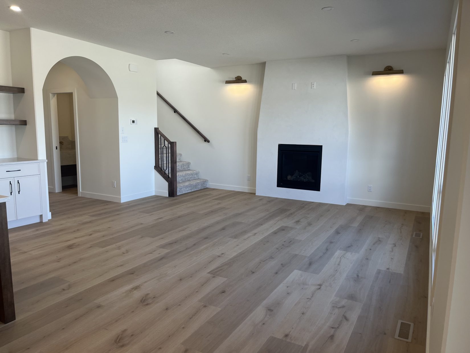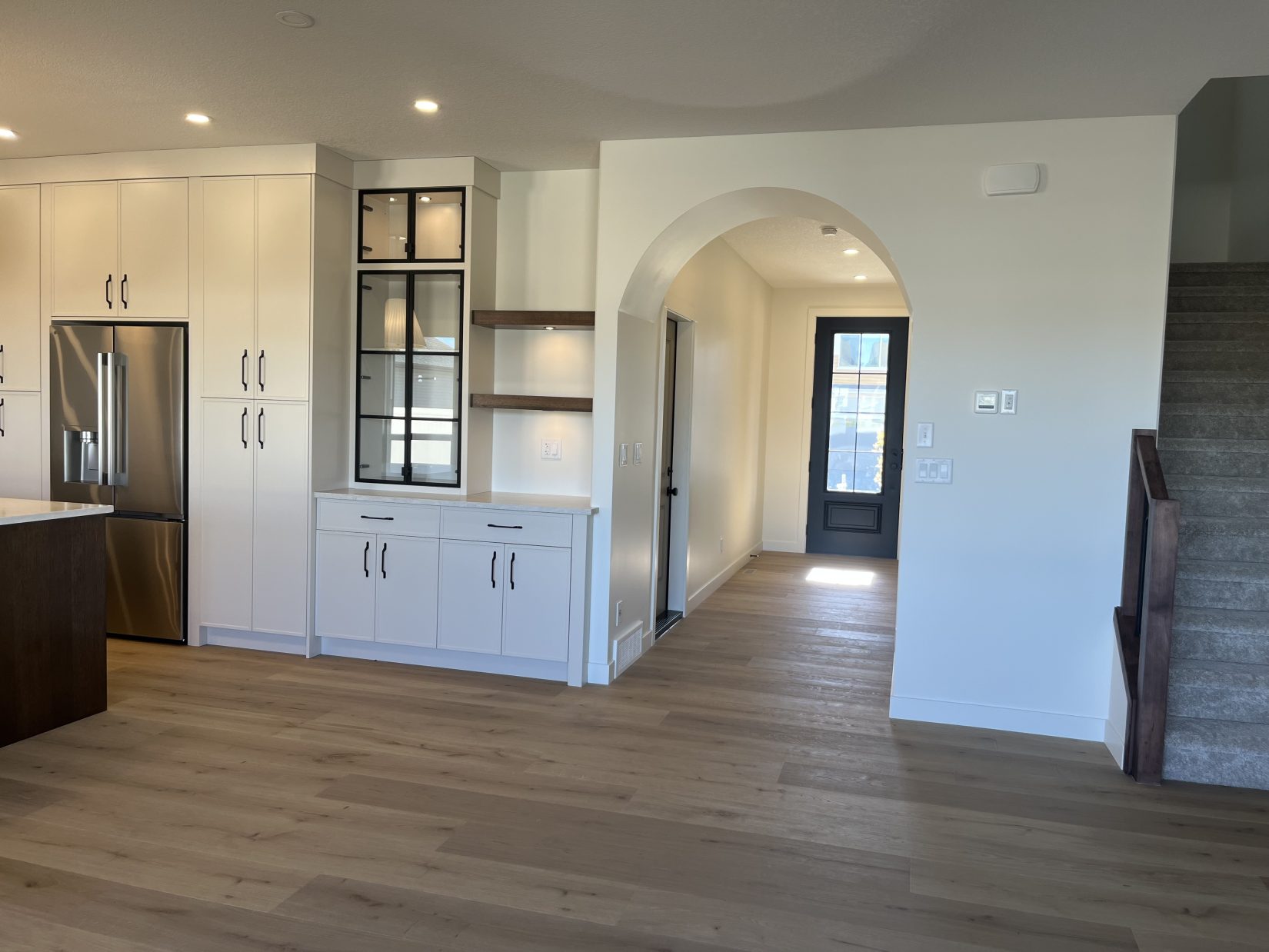The custom architectural design carries throughout the home, blending craftsmanship and creativity. Inside, you’ll find upgraded luxury laminate flooring, custom lighting, custom white maple railings and handrails, and premium finishes at every turn.